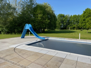 Um einen ordnungsgemäßen Betrieb zu gewährleisten, wird ein Wasserstand von 300 mm empfohlen. Bei der Planung des Standorts der Anlage ist zu beachten, dass die Rutsche aufgrund einer potenziellen Erwärmung ihrer Oberfläche idealerweise in nordöstlicher Richtung ausgerichtet oder im Halbschatten von Bäumen platziert wird. Diese Ausrichtung gewährleistet nicht nur eine angemessene Sicherheit, sondern auch eine angenehme Nutzung der Wasserrutsche durch die Besucher. Die Einhaltung dieser Empfehlungen trägt dazu bei, dass die Rutsche optimal funktioniert und gleichzeitig die Sicherheits- und Nutzungserwartungen erfüllt werden.