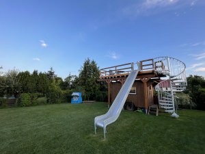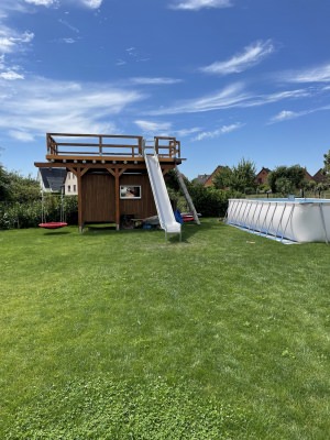 Durch den verlängerten, später im Boden eingelassenen Auslauf ist die Podesthöhe etwas variabel (± 5 cm). Die Rutsche kann so problemlos in bestehende Anlagen integriert werden.